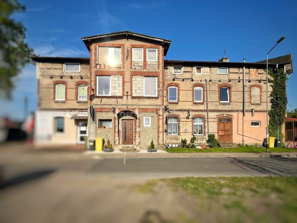 Przed budynkiem w zabudowaniach gospodarczych znajduje garaż i komórka lokatorska.